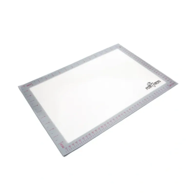 Eliminate the need for parchment paper and greasy cooking aids with this Silicone Bake Mat! This 11.75″ x 16.5″ mat is made from food-grade silicone and is reinforced with glass weave. Designed for all oven types. the non-stick baking mat provides even heat distribution to your baked goods to prevent any burning. To use. simply place bake mat on sheet pan writing side up. It features a handy measurement guide with inches and centimeters on the border. with the Fox Run logo in the corner. The mat can withstand temperatures from -40°F to 480°F (-40°C to 248°C). Its non-stick finish makes clean-up a breeze. An ideal surface for dough prep. and a perfect accessory for any baker!
