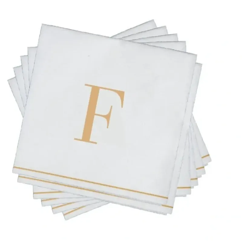 16 PK White and Gold Cocktail Paper Napkins - Letter F - cozylivehome.com | we sell a wide range of comfortable household items^ Shop All