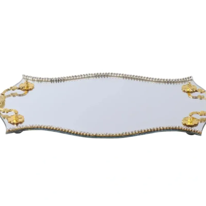 182298 Mirror Tray Circular Shape Gold Handles Crystals 15.5x9.5" - cozylivehome.com | we sell a wide range of comfortable household items^ Shop All