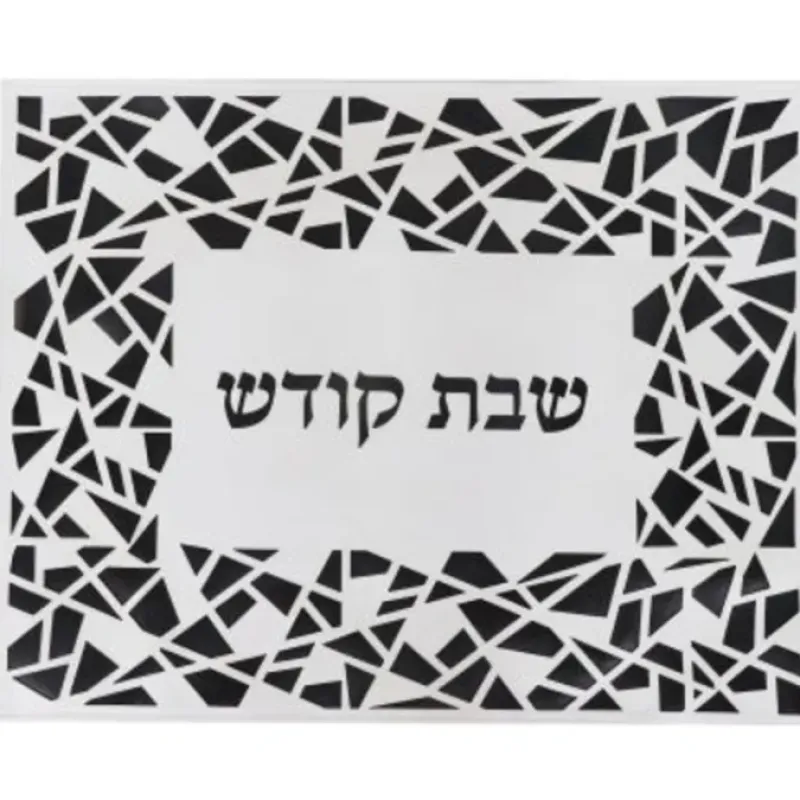PJ318020183111 Leather Look Black & White Framed Challah Cover Laser Cut 17.5″ X 21.5″