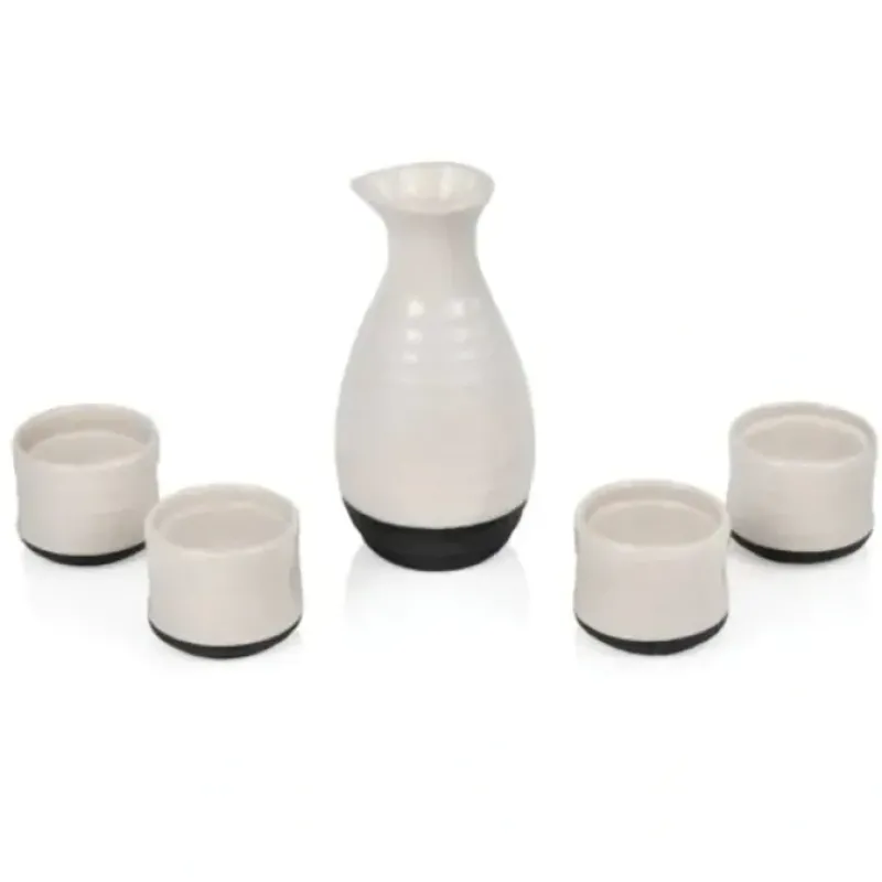 Sake: the chic rising star of the beverage world. Sip and serve it in traditional style with our authentic fire-glazed sake set. featuring four hand-painted cups and a specialized spouted sake carafe. Kanpai!
