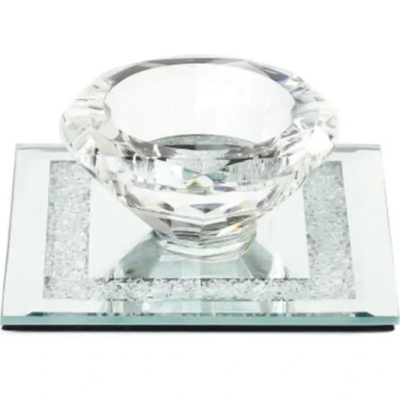 55533 Crystal Candle Holder w Glass Base Square Base 3.5×3.5″ – cozylivehome.com | we sell a wide range of comfortable household items^ Shop All