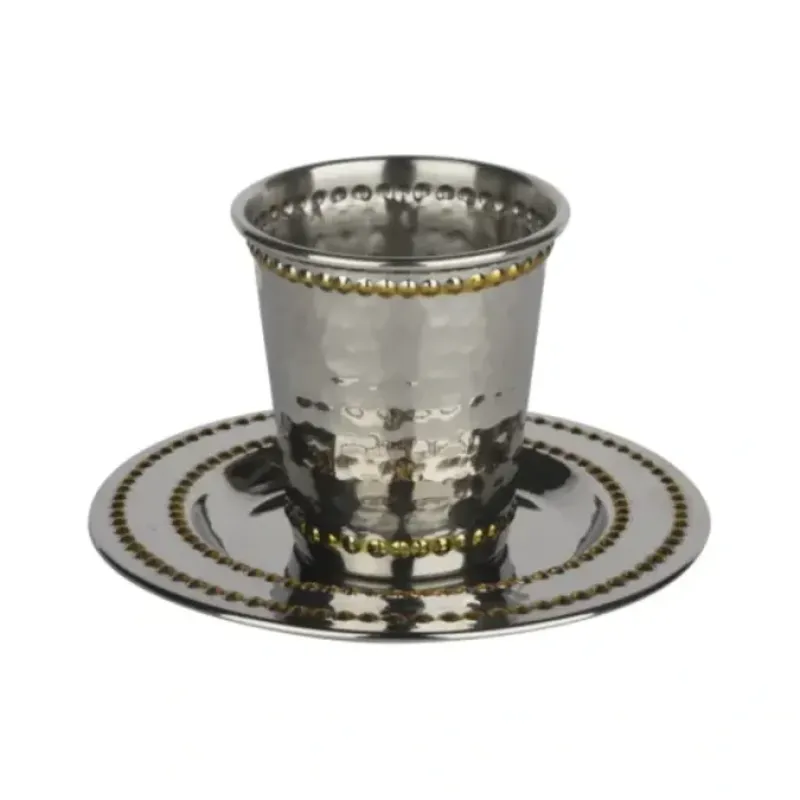 57146 Stainless Steel Kiddush Cup Set Hammered Gold Beaded 3" - cozylivehome.com | we sell a wide range of comfortable household items^ Shop All