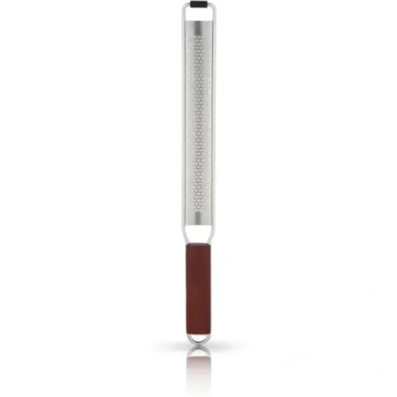 Finish handcrafted cocktails with a professional twist of citrus. Polished acacia with a smooth exposed grain provides ergonomic support while a generous expanse of stainless steel delivers a durable grating surface on which to shave segments of rind into delicate garnishes. Most suitable for oranges. lemons and limes.