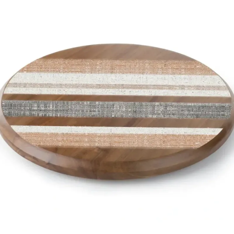 Round Acacia Wood Lazy Susan Turntable. Wood Lazy Susan Turntable is made of high-quality solid wood. The wood is sturdy making it suitable for everyday use. Ideal for entertaining when serving cheese. fruit. and appetizers. Use as a Cake Plate. the rotation makes it easy to ice and decorate your cake. Put Pizza on it to cut and serve. Lazy Susan Turntable measures 14” round and 1.25” in height.