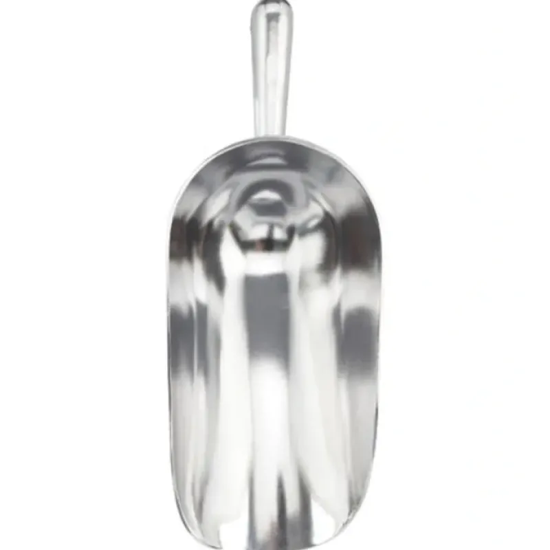 Flat Bottom Food Scoop is versatile and useful for many tasks. This commercial-quality scoop features a straight front edge to slide under items easily. The flat bottom scoops from the bottom of containers and out of corners without missing a morsel. It stays put and wont rolling away when not in use. The deep walls scoop generous amounts all at once and keep contents in with less spillage. A must-have for home brewing supplies for scooping hops and whole grains to homebrew craft beer. Its a great addition to pet supplies for portioning out servings of dry dog food and cat food or filling the bird feeder with cracked corn. sunflower seeds and bird seed. scoop horse feed and other pet food for chickens. goats. rabbits and alpacas. Stash a scoop in the garage with lawn care and gardening supplies for spreading grass seed and fertilizer. moving soil and mulch or decorative stone. spreading compost in the backyard garden and filling planters with potting soil. Scoop and spread rock salt. calcium chloride or ice melt on the driveway and sidewalks in the winter months and fill the summertime grill with charcoal briquettes while protecting hands from harsh chemicals.