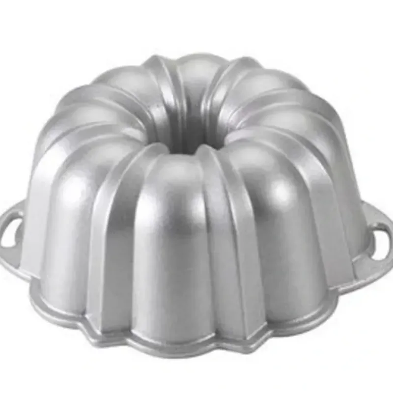 Genuine Bundt pans are made of durable cast aluminum to achieve the crispest. most intricate cake detail possibleCast aluminum’s superior heat conductivity ensures controlled. even browning of cakes and treatsPremium silicone nonstick is free of PFAS and PTFE for healthy baking and ensures effortless release and cleanupProudly American Made since 1946. our heirloom-quality pieces are made to withstand a lifetime of use in your home kitchenThe Pan exterior is 10.8-inch diameter and 4.5 inches in height. and the handle to handle is a 12-inch diameter. The pan capacity holds 15 cups.