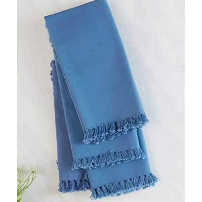Essential. Finely woven cotton is presented in a range of solid colors expressly designed to coordinate with the collection in every possible way. Perfect for drawing out what catches your eye. or for toning down a bold print — these timeless. versatile textiles are must have decor. 100% Cotton Rich gentle colors. trimmed in hand-knotted fringe. adding a hint of festive to any occasion The beautiful vibrant colors of these napkins coordinate with all of April’s tablecloths. Pick your favorite cloth and there is a napkin set to pair perfectly with it. Set of 4 18″ x 18″ Machine wash separately in cold water. tumble dry low. warm iron