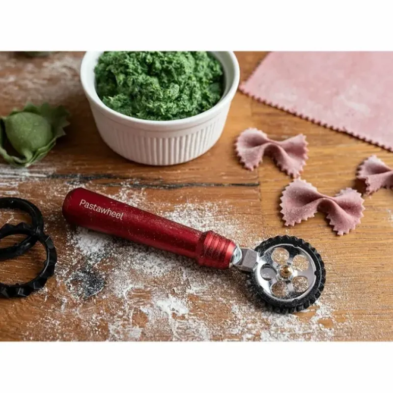 - 3 interchangeable wheels (flat. small zigzag. large zigzag) cut dough and seal edges to lock in pasta fillings; quickly makes straight or fluted cuts