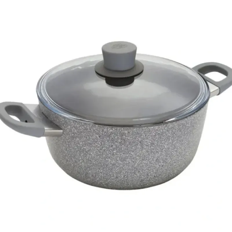 Thanks to its signature speckles. the superior BALLARINI Parma Plus line is a nonstick like no other. The Granitium nonstick coating is reinforced with revolutionary speckles and ceramic particles that ensure quick release and easy clean up. With a heart of stone. this ultra-durable Granitium coating boasts unsurpassed scratch resistance. making it metal utensil safe. And the comfortable. soft grip handle offers a no-slip grip.