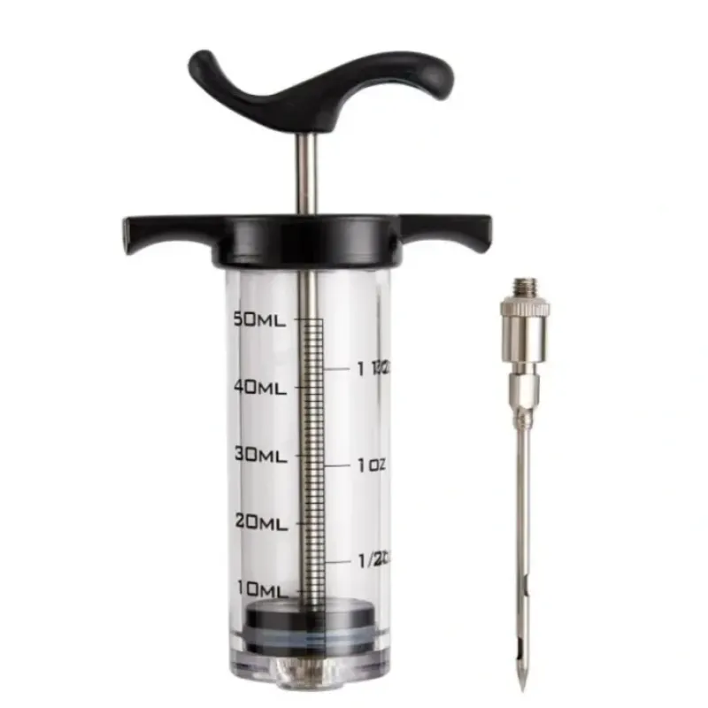 - Transparent tube for clear view of contents and easy measuring; injector needle easily distributes citrus juices and marinades directly where needed
