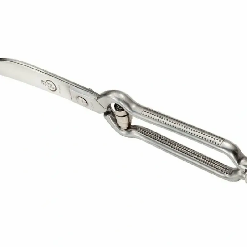 These shears feature a curved. 3 1/2″ fine-toothed blade edge for better traction while cutting and an extreme precision cutting mechanism for superior performance. Not only do they ensure that cutting tasks are easy and efficient. but they are a great multi-purpose tool. They can easily prepare all kinds of small game and poultry. including chicken. turkey. and duck. Use them to easily remove joints. cut through small bones. and navigate into tight creases for the perfect cut. The ergonomic handle is textured and easy to grip. and the simple. classic design is sure to live up to the daily wear and tear of your commercial kitchen. As an added safety feature. these shears have a safety lock to keep the blades closed while not in use.