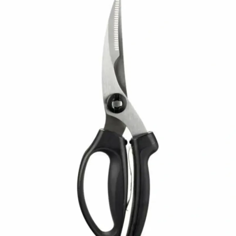The tapered. finely serrated blades of these shears trim. cut and divide poultry with surgical precision. while their soft spring-loaded grips reduce hand fatigue. A notch in the blade holds bones in place while you’re cutting.