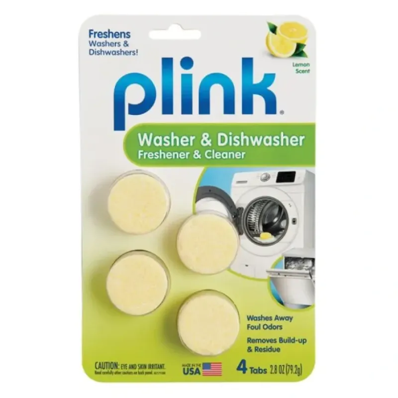 - Plink’s Washer Dishwasher Freshener and Cleaner tablets deodorize and clean clothes washers and dishwashers without using any phosphates or bleach