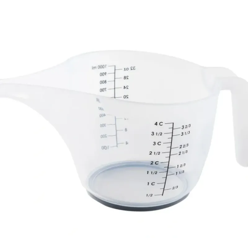 - Printed measurement markings in millilitres. cups. and fluid ounces