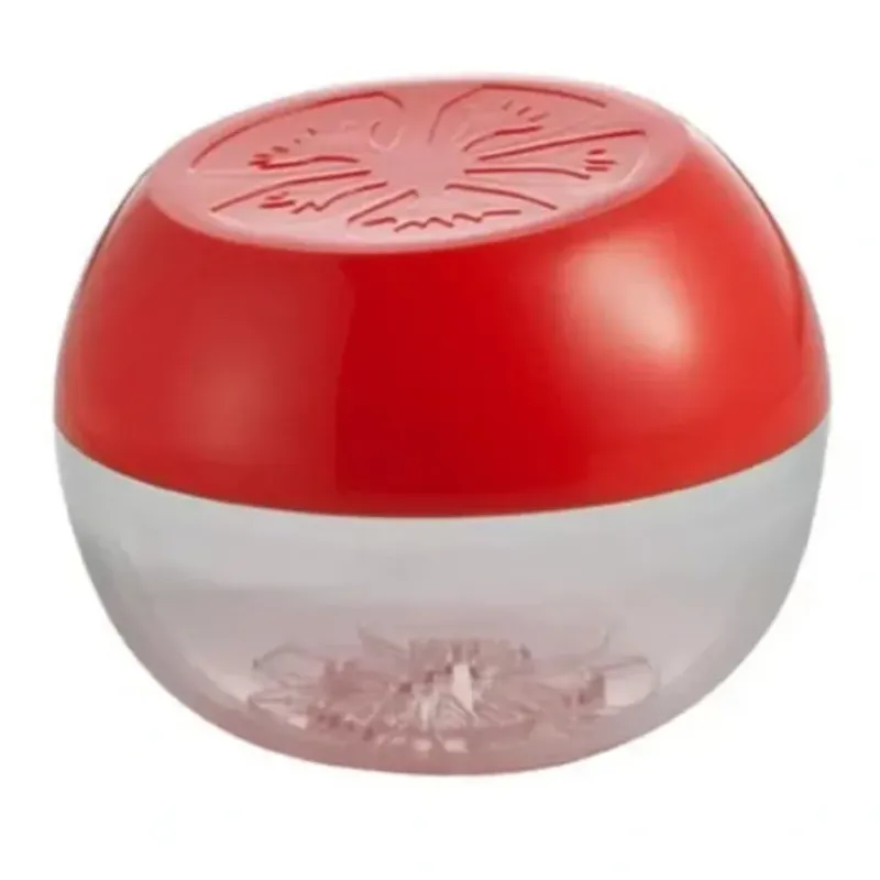 Keep cut tomatoes fresh in the refrigerator. The bright and practical Tomato Saver is always easy to find in a crowded refrigerator. It is also a fun way to serve sliced tomatoes at barbecues and picnics. The 2 sides attach by twist lock. Features a clear bottom and jewel-toned top. It is phthalate and BPA-free. Reusable and recyclable. Dishwasher safe.