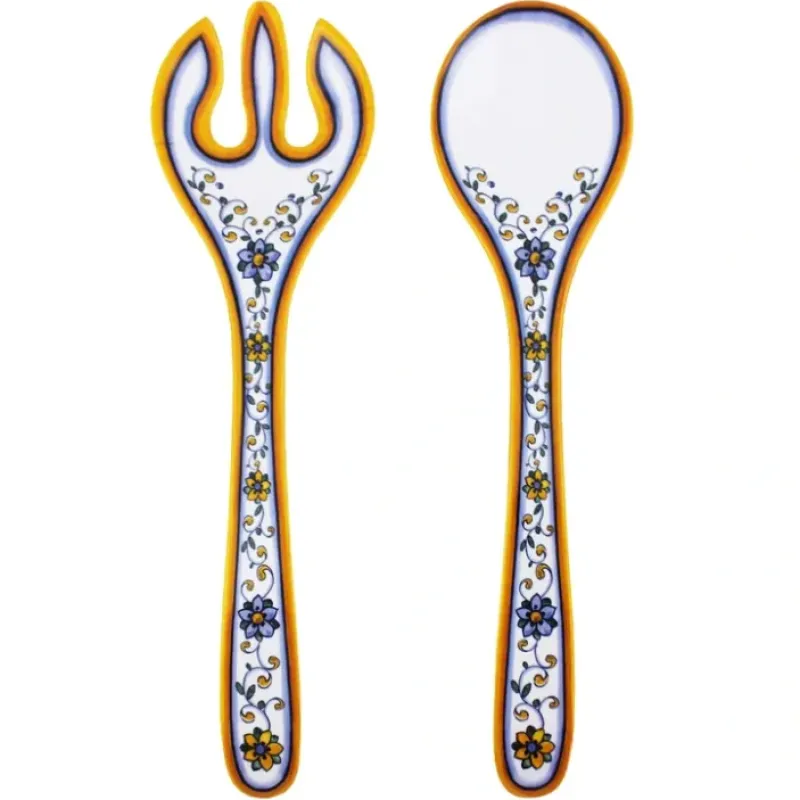 BPA Free 100% melamine. shatter-resistant and dishwasher safe. top and bottom rack. as with all melamine. not recommended for microwave. Includes one Salad Serving Set that are 13.75″.