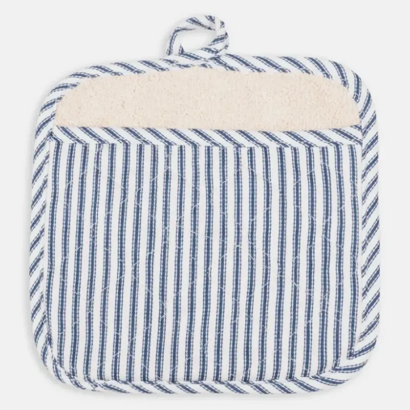 Our metro stripe pot holders are stylish. comfortable. and safe. Available in a variety of striking colors. these pot mitts are perfect for handling almost anything that can go in the oven. Convenient loop for hanging on a hook.