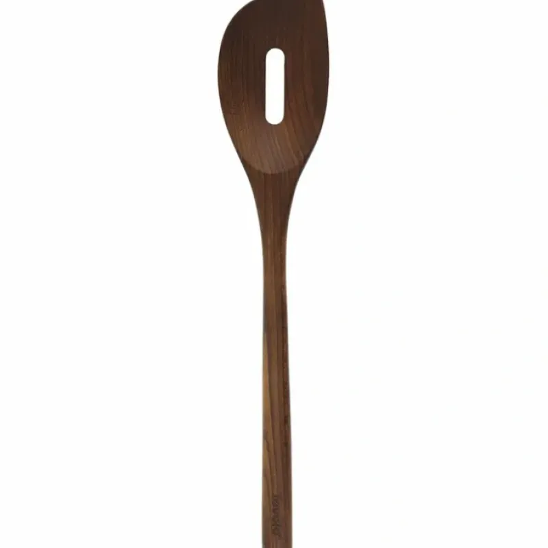 Strain and serve all in one with this sleek Tovolo slotted spoon. Its ergonomic handle ensures a smooth and comfortable grip. while the shallow bowl and carved slots allow for easy straining. Made of toasted beechwood. this BPA-free and food-safe slotted spoon is a one-of-a-kind tool. This beautiful spoon is guaranteed to be a staple in your kitchen soon.Tovolo Toasted Beechwood Slotted Spoon