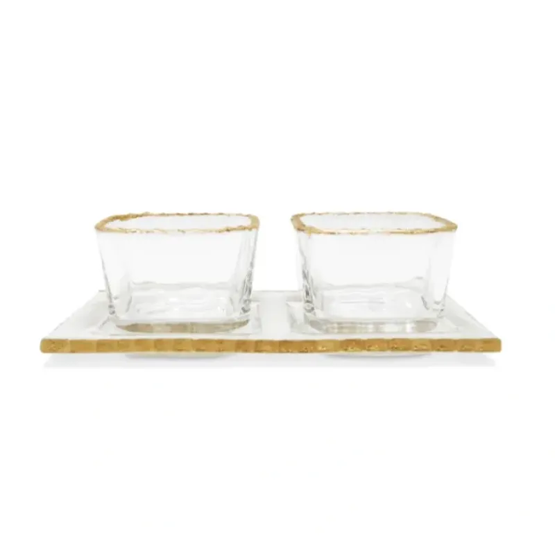 DescriptionP6574782VSD2870 2 Bowl Relish Dish on Tray with Gold Rim