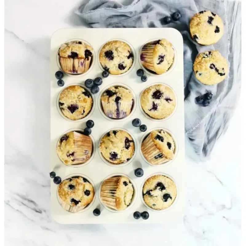 USA Pan ceramic muffin pan boasts twelve precisely crafted cavities. ensuring bakery-quality treats whether you opt for paper liners or not. From traditional banana nut muffins to beautifully decorated cupcakes for special occasions. the possibilities are endless. But that’s not all! With our versatile muffin/cupcake pan. you can also whip up tasty breakfast cups or other savory delights to satisfy any craving. Fashioned from aluminized steel. this pan ensures optimal heat conduction and sturdiness. Its oversized rectangular design makes transferring hot pans in and out of the oven a breeze. What’s even better? Our pan features a ceramic non stick coating. ensuring your culinary creations release easily and simplifying cleanup with a quick hand wash in hot water.