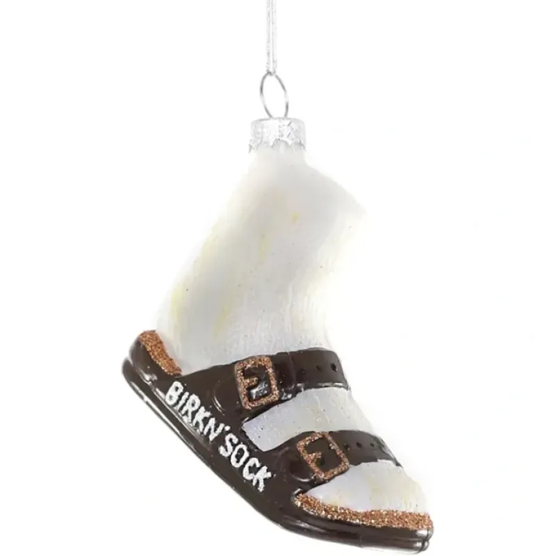 For your friend who loves their Birks. they wear them non-stop. whether in the summer or winter with socks. This ode to the classic sandal is available in black or brown. Made from glass. this ornament measures 3 x 1.5 x 2 inches.