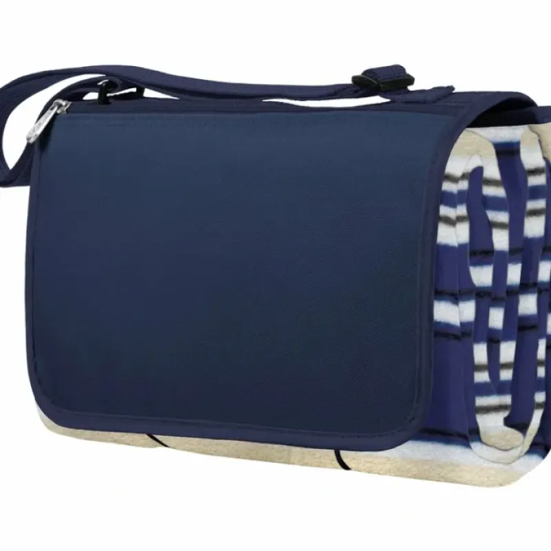- Nearly 21 square feet of seating area; Water-resistant underside shields you from damp grass and cleans up easily; Soft fleece (140 gsm) topside for comfortFolds into a compact carry tote with shoulder strap; Has a security pocket on the flap of the folded tote