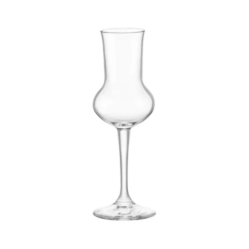 The grappa glass has a capacity of 8 cl; it has been designed to enhance the clarity. aromas and organoleptic characteristics of the distillate. The classic tulip shape adpats to any setting.