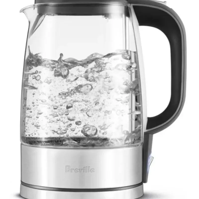 Breville’s sparkling glass kettle boils water in a hurry – and looks great doing it. A powerful 1800W heating element inside its 360 swivel base guarantees impressive efficiency. quickly boiling up to 7 cups of water. When the water is hot. the kettle lifts off the stainless-steel base for easy table service.