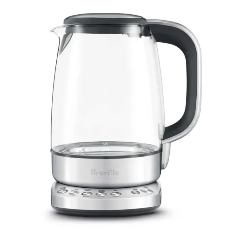 This 7 cup capacity kettle knows the ideal temperature for tea or coffee. 5 varietal settings to brew at the right temperature for Black. Green. White. Oolong Tea and French press coffee. One-touch functionality keeps your water warm for 20 minutes and can be activated before during or on completion of the water heating cycle. A bubbling brew presents a few hazards on the way from kettle to cup. This specialized lid gently releases steam and eliminates splashing. Cordless Jug with 360 degree multi directional base with cord storage wrap.