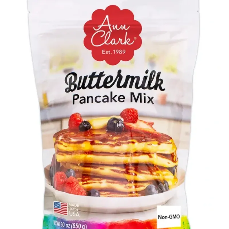 Dave. our Production Manager. happens also to be an expert maple sugar maker. tapping trees on his land to produce some of the best small-batch maple syrup we’ve ever tasted. Our new Ann Clark gourmet Buttermilk Pancake Mix was born when Dave developed a better pancake recipe to complement his syrup. Quality syrup deserves a quality pancake. There’s nothing like a tall stack of fluffy pancakes hot off the griddle. with fresh melted butter and real maple syrup. You can do it! Make a big impression – it’s going to come out great. The secret to Ann Clark’s gourmet pancake mix is premium ingredients. which gives our pancakes a rich and subtly tangy flavor. and reacts with leavening agents in the batter to create air bubbles. making perfect tall and fluffy pancakes. Mix just enough to combine wet and dry ingredients. leaving a lumpy batter. Why? If you overmix. gluten will develop. making your pancakes chewy rather than fluffy.