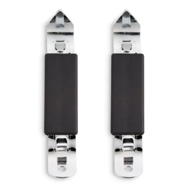 - Made from chrome-plated iron with polypropylene; comfortable grip; compact for easy storage; strong magnets store them on the fridge between uses