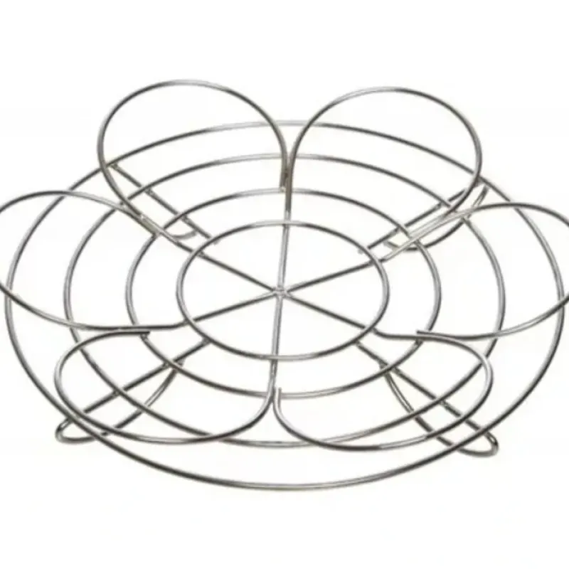 The Prepworks reversible stainless steel canning rack uses a flower design to protect jars from touching each other during processing. User can place a second basket stacked on the first to process twice the amount of jars at once. The reversible design allows a fit for 1/2 pint. pint and quart jars. One side fits 4-quart sized jars and one side fits 7-1/2 pint or pint jars. The rack measures 10-1/4-inch diameter by 2-inch high and fits in an average 16 quart pot or larger. Made from 18/10 stainless steel. it will not rust and is dishwasher safe.