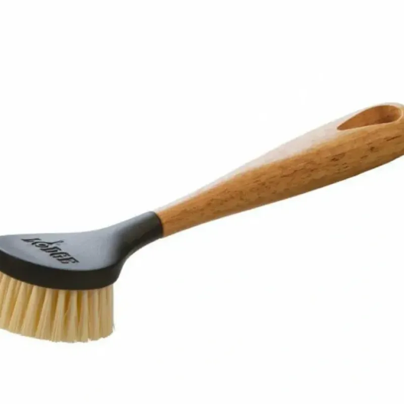 This Scrub Brush makes short work of cleaning your cast iron or enamel cookware. The rubber wood handle with a natural lacquer finish has an ergonomic design for greater comfort. Effortlessly clean seasoned cast iron without harming the seasoning. thanks to the dense bristles.