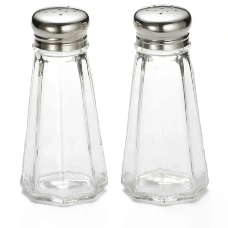 Classic salt and pepper shakers help tidy up your seasoning options next to the stove or on the table. Durable. rust-resistant tops.Clear Glass . stainless steel topsPkg Dim: 5 x 2 x 6″