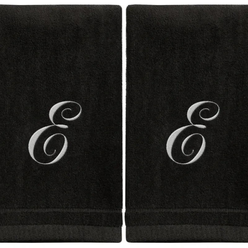 DescriptionC5118960Black Monogrammed Towel – White Embroidered – Initial E