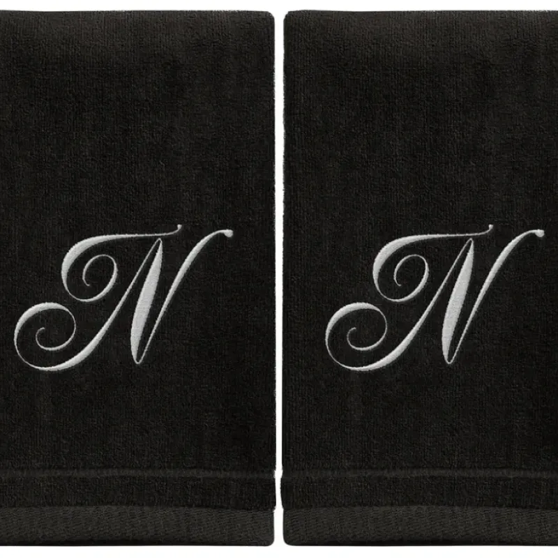 DescriptionXD074605Black Monogrammed Towel – White Embroidered – Initial N