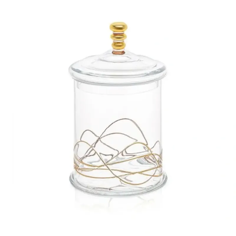 DescriptionMC392761CSJG398 M- Glass Jar with Lid with Gold Swirl Design