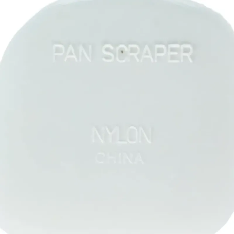 - Made of flexible. durable white nylon this scraper is perfect for cleaning pots. pans. pizza stones. and other stoneware and cookware that needs scraping