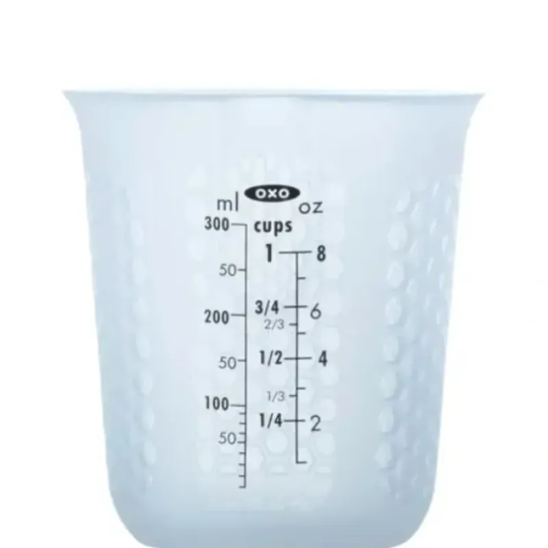 With a flexible body and spout. the Squeeze Pour Silicone Measuring Cup makes it easy to mix. measure. microwave and pour all from the same Measuring Cup. The specialized honeycomb pattern protects your hands by dissipating heat and a simple squeeze forms a precise pour spout.
