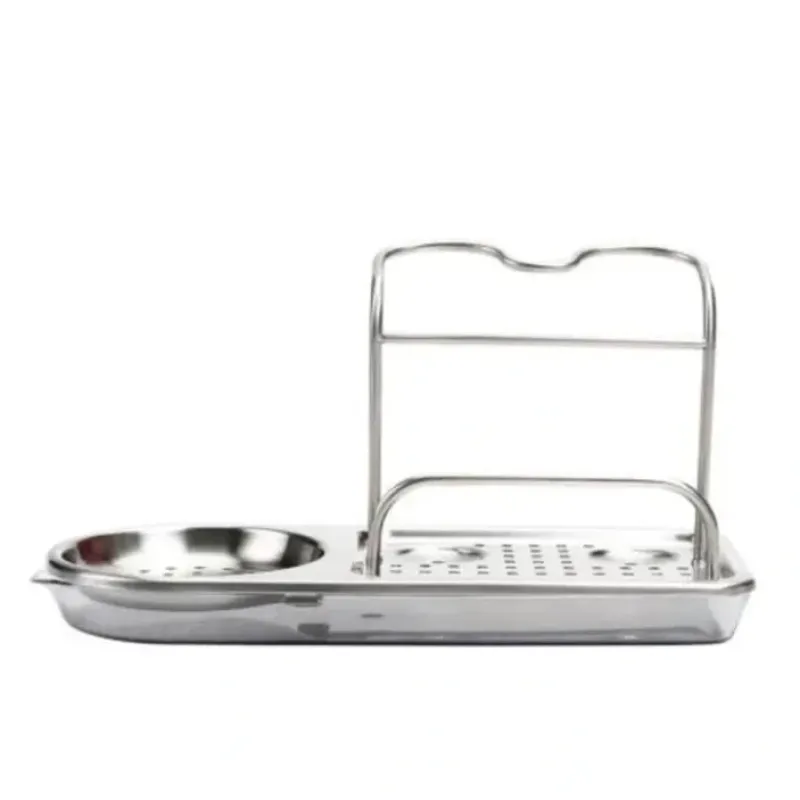 The Stainless Steel Sink Organizer features separate areas for long-handled brushes. palm brushes. pump dispensers and a sponge. The slim design fits in tight spaces and won’t take up valuable counter space. The perforated base keeps sponges and tools dry. The drip tray is removable for cleaning.