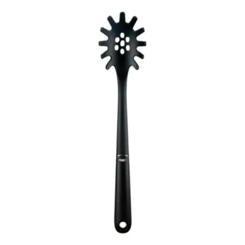 The Nylon Spaghetti Server lifts. portions and serves spaghetti. linguini and angel hair pasta with ease. Our nylon tools are a cut above. featuring oversized heads. extra-long. sturdy necks and comfortable grips. Heads are heat-resistant up to 450°F and won’t scratch non-stick cookware.