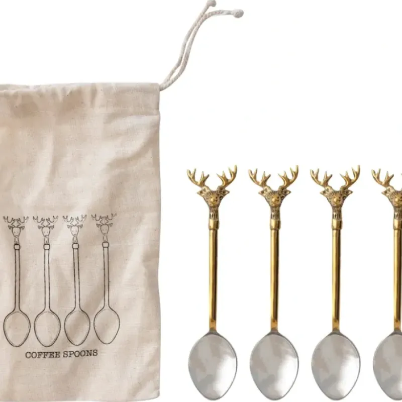 5-1/2″L Stainless Steel Brass Spoons w/ Gold Finish Reindeer Handles. perfect for desserts. coffee. canapés and more.