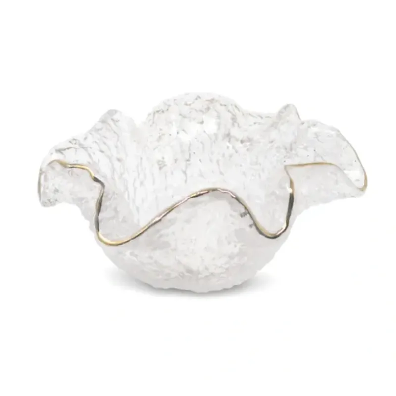 DescriptionDR277321VB3946 Hammered Glass Ruffled Bowl with Gold Trim – Medium