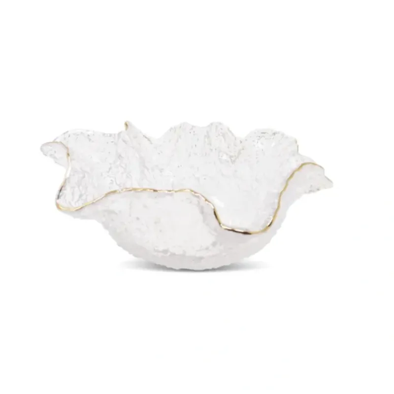 DescriptionCQ242590VB3947 Hammered Glass Ruffled Bowl with Gold Trim – Small