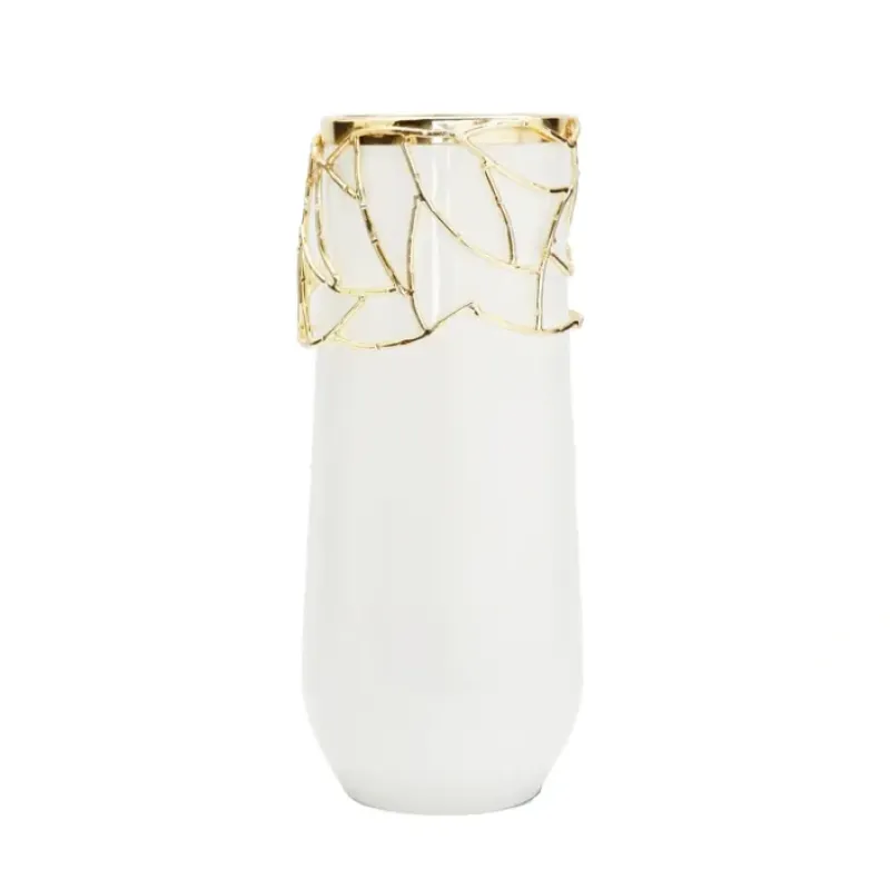 DescriptionOA629135WGV2739 White Glass Vase Gold mesh Design