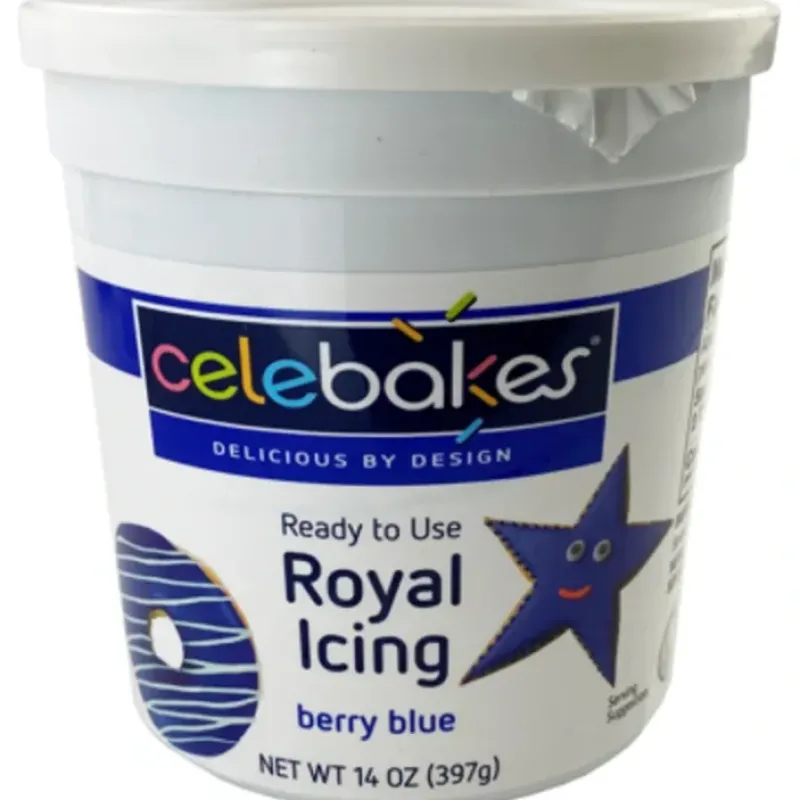 Celebakes ready-to-use royal icing is the perfect product for decorating cookies and cakes. Its consistency is great for flooding cookies and decorating gingerbread houses. Directions: Remove lid and stir well. Make sure to replace the lid when not in use.For flooding cookies. pour royal icing directly into piping bag or squeeze bottle.For a firmer consistency. when detailing cakes and cookies. add powdered sugar.Tub covers approximately 3 dozen cookies. Icing can be colored and flavored with high quality color gels and extracts. Icing will begin to set up 30 minutes after flooding and can be stacked after 12 hours or overnight.AttributesBrandCelebakesSpecific ColorBerry BlueSize14 ouncesCase Count6 countYieldCovers 3 dozen cookiesPrimary Storage ConditionStore in a cool dry placeKosherPareveCountry of OrginMade in the USA