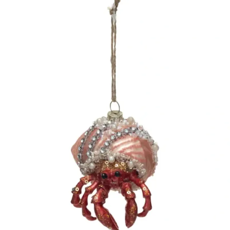 Bring the world underwater to the surface and straight to your Christmas tree. Our handblown glass Jeweled Hermit CrabOrnament has a shell that is bedecked with glitter and beads for a bit of oceanic bling.
