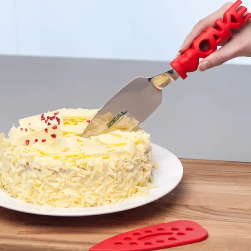 Slicing Cake ServerStainless Steel bladeProtective blade cover for safe storage“I love cake” design for handleDishwasher safeBPA free.