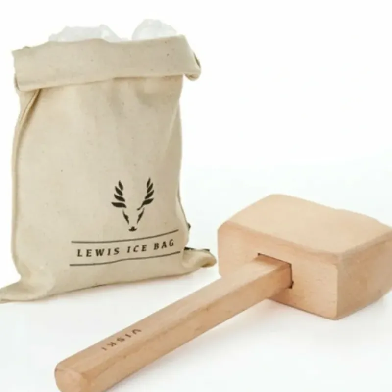 Cubes are for vodka sodas – real cocktails get superior ice. Crush your own for juleps. swizzles and smashes in this professional-grade canvas ice bag. based on the original Lewis design and accompanied by a heavy hardwood mallet.